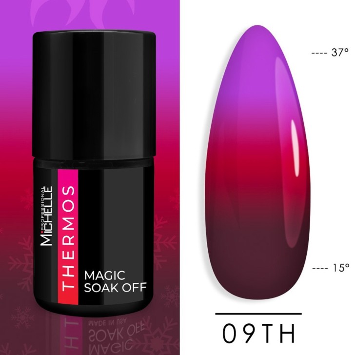 La nuova linea Michelle Professional di Smalti Semipermanenti Thermos si caratterizza da colori vivaci che 'magicamente' cambiano a seconda della temperatura delle unghie e dell'ambiente circostante. La formula innovativa a multistrati termici possiede fino a 4 tonalità di colore in un unico prodotto. Il colore più chiaro lo si ottiene dai 37°C della temperatura corporea, e man mano si scurisce in ambienti freddi fino al punto più scuro intorno ai 15°C.