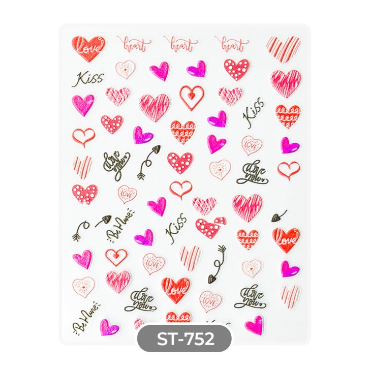 Stickers Adesivi a tema San Valentino. Ideali per decorare le vostre unghie. Gli stickers adesivi  si possono applicare sia su unghie ricostruite che su smalto. Per una maggiore tenuta si consiglia, dopo l'applicazione degli stickers adesivi , una passata di smalto trasparente su unghie naturali o gel sigillante su quelle ricostruite.
