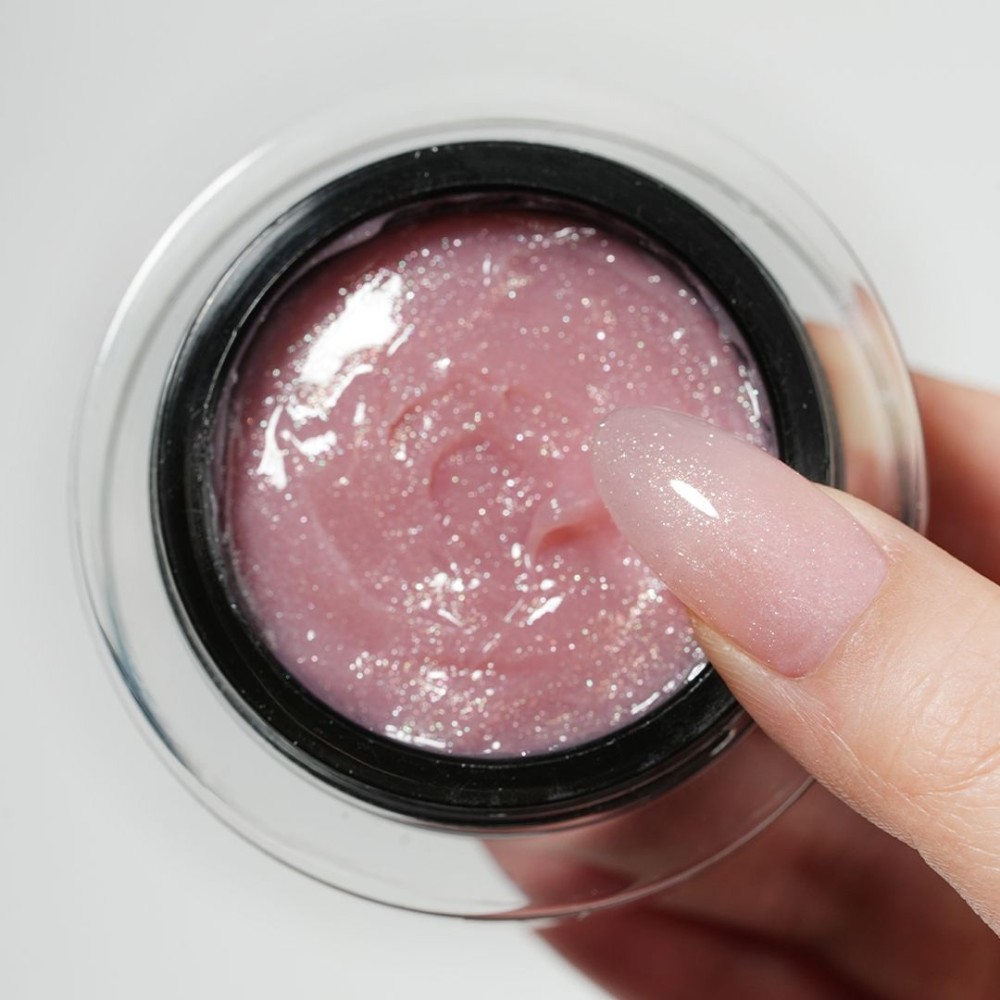 Gel costruttore di medio-alta densità di colorazione naturale con microglitter. Stabile ed automodellante.